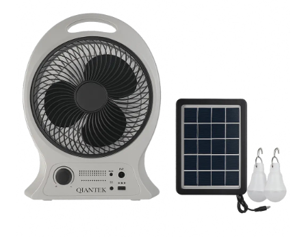 Ventilador 14″ Recargable + Panel solar + 2 bombillos recargables